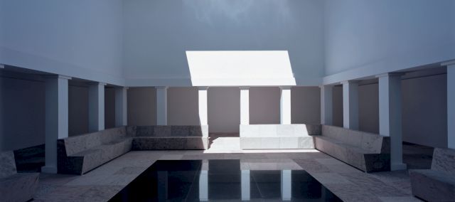 Donald Hess, who has been collecting James Turrell’s installations for the past 30 years, has built the only museum in the world solely dedicated to Turrell’s work. The Hess Art Collection is based on a plan created by the artist himself and reveals a more than 18 000 square foot large space, divided into 9 chambers that each house different pieces, representing over five decades of Turrell’s career. Besides numerous drawings, prints and earlier works such as “Alta Green” (1968), or the luminous corridor “Lunette” (2005), the museum exhibits numerous site-specific installations. Among them, a 4 000 square meter large room filled with blue light (“Spread”, 2003) and “Unseen Blue” (2002) – a large open-roofed atrium featuring the world’s largest sky space that presents a mesmerizing interplay between artificial light and natural sky.